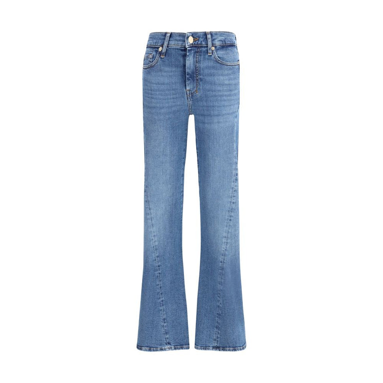 The Dojo Tailorless flare Jeans by 7For feature a mid-rise and a fitted fit on the hips and thighs, opening into a sleek flare from knee to hem. Made from Slim Illusion denim, they offer a shaping effect that enhances the silhouette. A classic five-pocket pattern and zip-and-button closure complete the design.