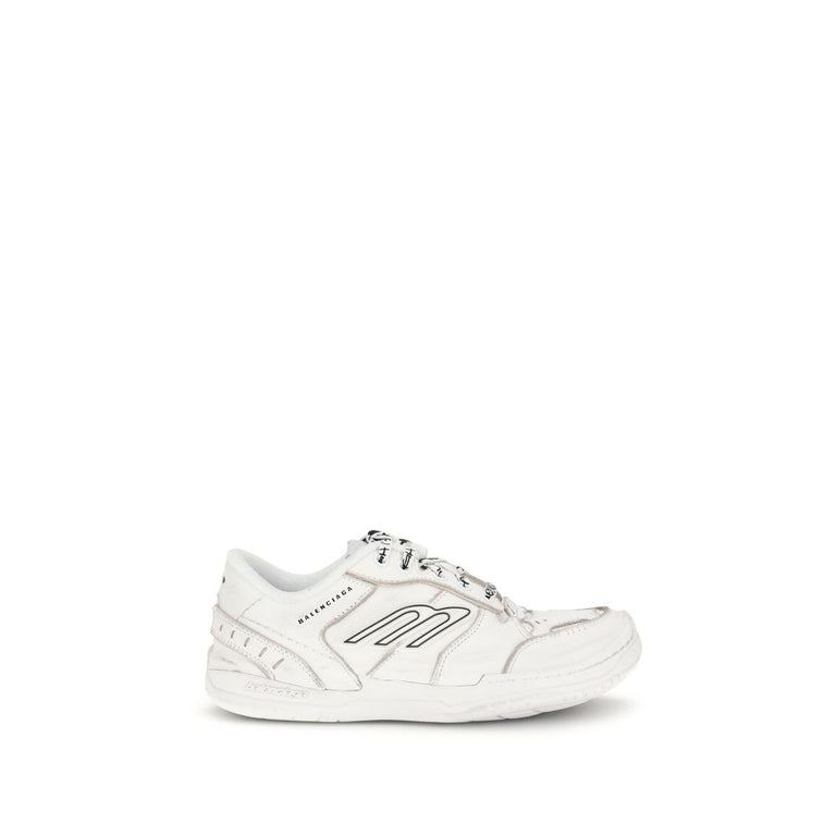 Hamptons Worn-out Sneakers by Balenciaga reinterpret streetwear style with a medium-worn effect that lends character and originality. Twisted laces, exposed topstitching and raw-cut edges enhance the intentionally lived-in aesthetic. Iconic details such as the Balenciaga logo embossed on the upper and embossed on the sole, along with the 3B motif and sports icon loops, complete a bold and recognizable design.