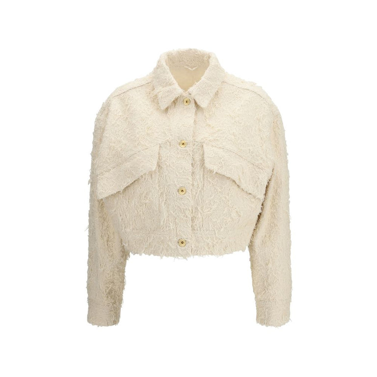 The fuzzy dyed denim outerwear Jacket with monili by Brunello Cucinelli blends casual texture with refined detailing. Crafted in garment-dyed denim with a soft, slightly brushed finish, it stands out for its understated yet luminous Monili embellishment, a subtle signature of the brand. Designed in a cropped silhouette, it features a classic collar, front button fastening, and two large angled flap pockets that enhance its contemporary utility appeal. A sophisticated reinterpretation of denim outerwear, balancing relaxed attitude and elevated craftsmanship.