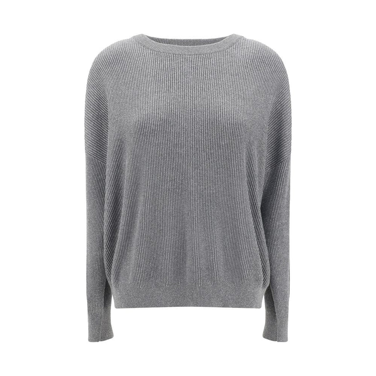 Brunello Cucinelli’s cotton Sweater is a refined and versatile garment perfect for any season. The ribbed crew neck gives a clean, classic silhouette, while the ribbed cuffs and hem ensure a snug, comfortable fit. The ribbed design lends texture to the fabric, while the silver thread running through the knit adds a subtle luminous glow, making the sweater elegant and sophisticated.