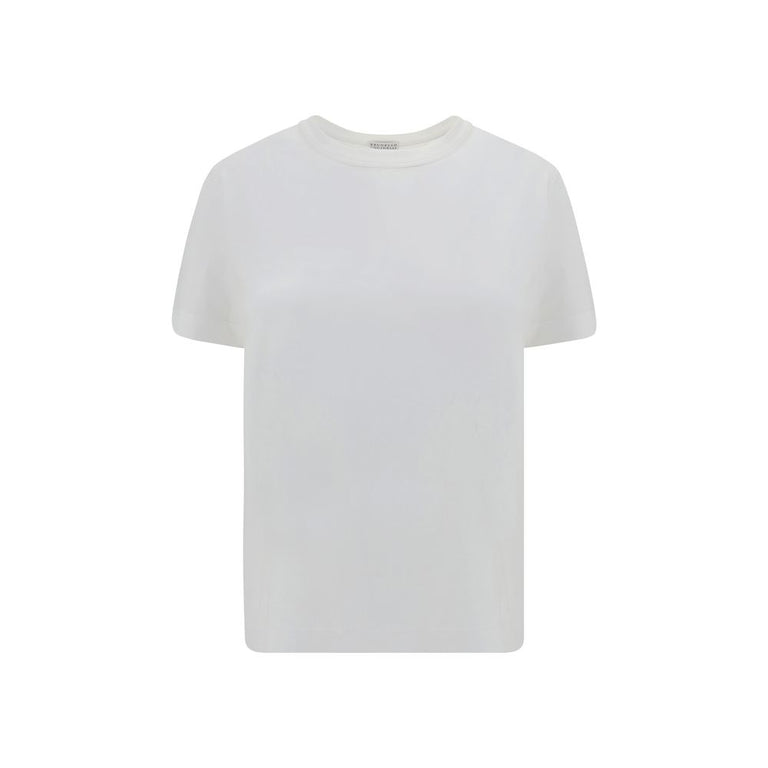 Brunello Cucinelli’s cotton T-Shirt is an elegant and versatile garment featuring a ribbed crew neck that adds understated texture. The shiny jewel detail applied on the back gives a touch of luxury and originality, while the monochrome pattern keeps the design simple yet refined. The regular fit offers comfort and practicality, making this T-shirt perfect for both casual and more dressy pairings.