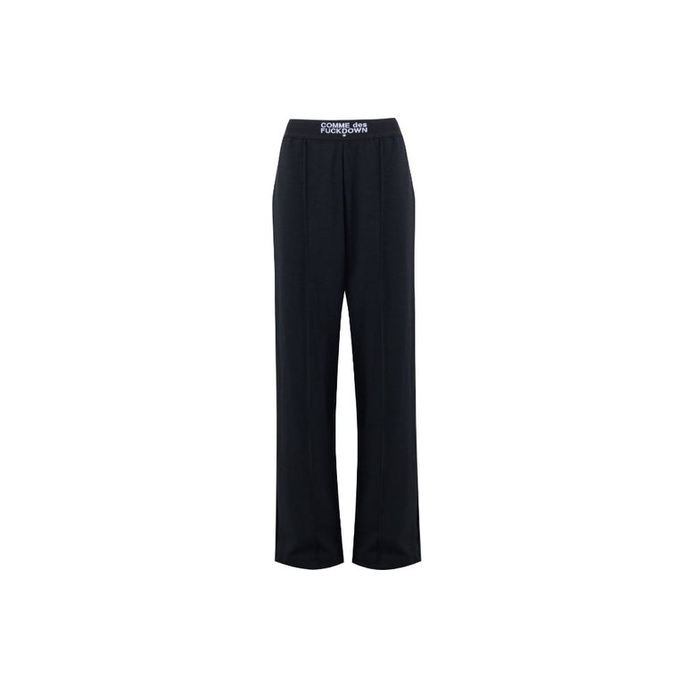 Make a statement in urban elegance with Comme Des Fuckdown’s sleek palazzo trousers. Designed with a bold stretch waist showcasing the emblematic logo, these trousers encapsulate comfort-chic. Float through your day with timeless ease and a touch of rebel flair.