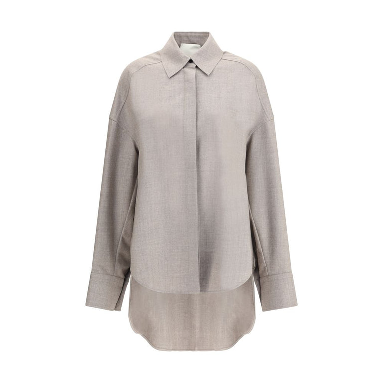 Di Stavnister’s Heidi Shirt is a contemporary design that combines soft lines and tailored details. Featuring a classic collar and dropped shoulders, it has a front button closure and an asymmetrical hem that adds movement and originality to the design.