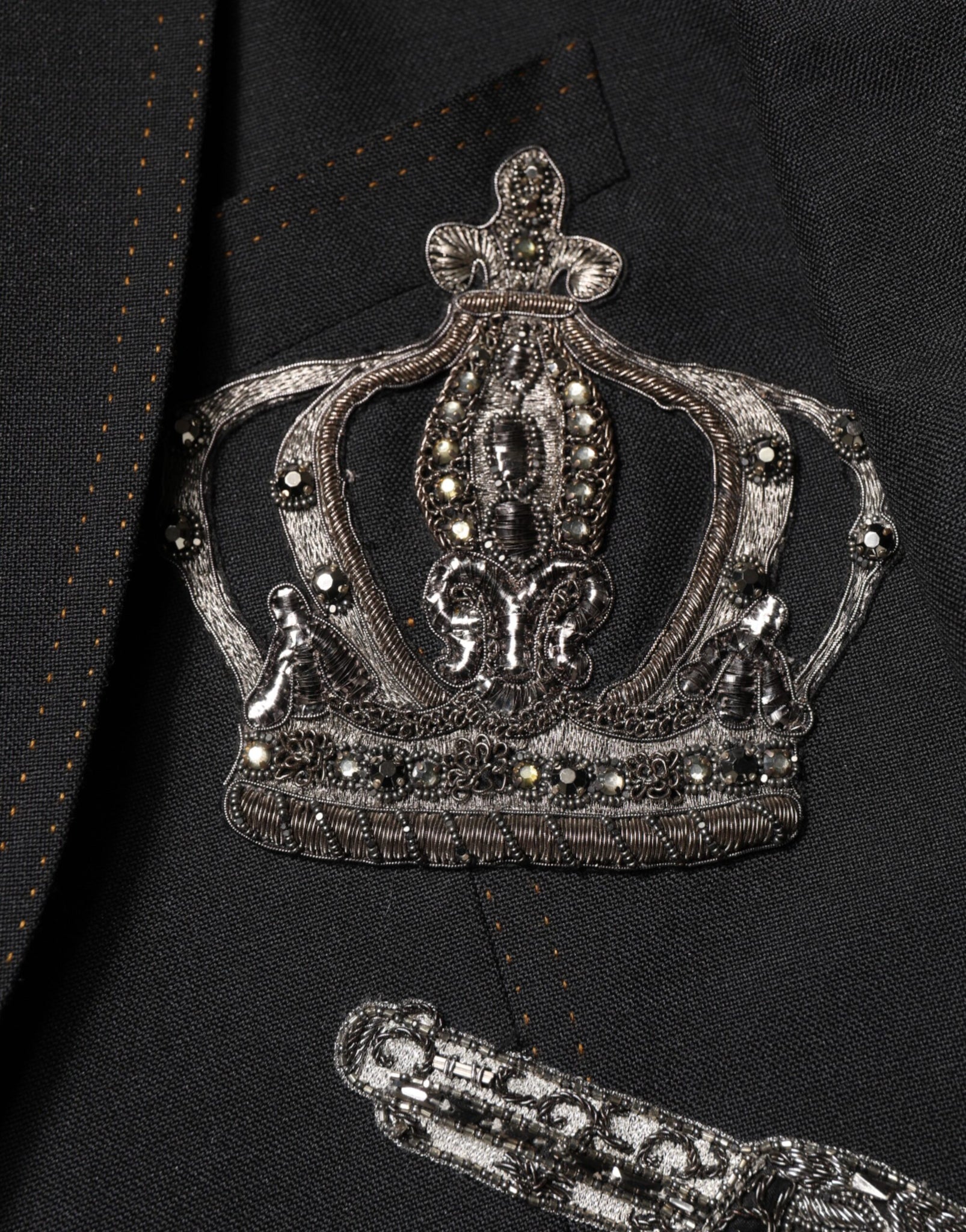 Dolce & Gabbana Black Bee Crown Embellished Suit Coat Blazer