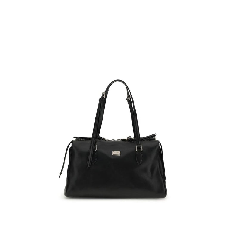Vittoria Shoulder Bag by Dolce&Gabbana is an accessory with a bold and refined style, ideal for everyday elegance. Featuring leather handles and a zipper closure, it is distinguished by its Miami palladium galvanic finish, which lends brightness and modernity to the design. It is embellished with a monogalvanic logo plaque on the outside and a foil stamp on the inside, which underscore its attention to detail. The practical and functional interior includes a zippered pocket and a flat pocket for perfect organization.