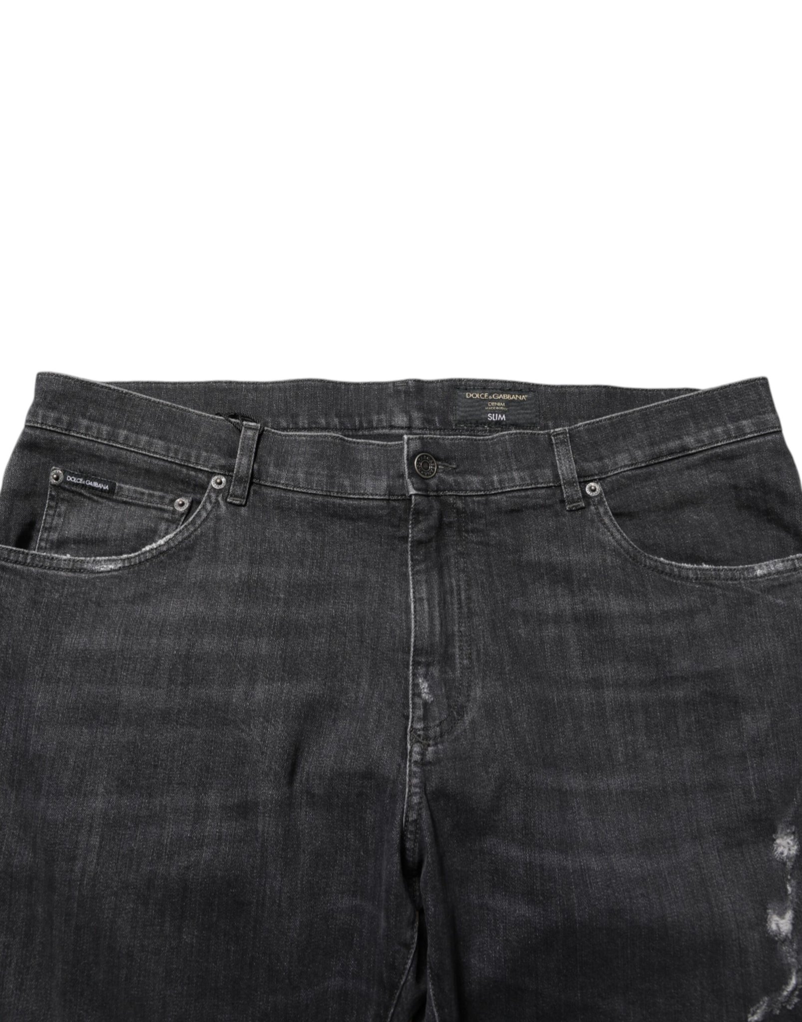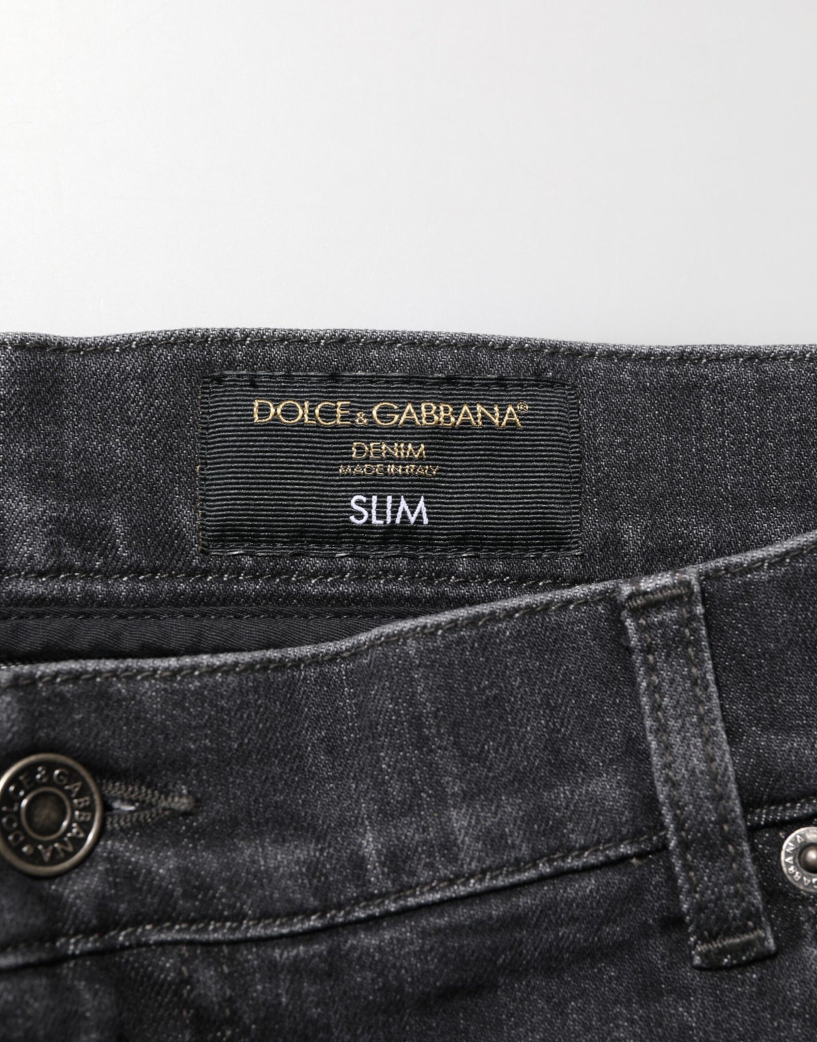 Dolce & Gabbana Black Cotton Slim Fit Distressed Ripped Logo Jeans