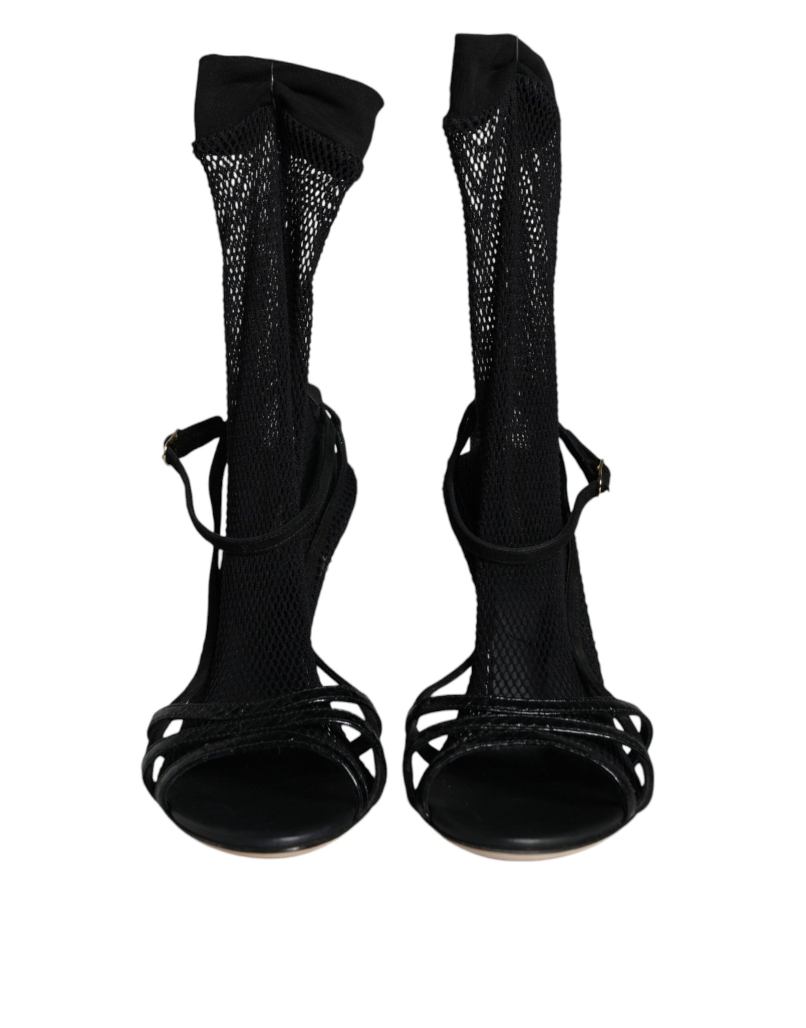 Dolce & Gabbana Black Mesh Stiletto Heels Sandals Shoes