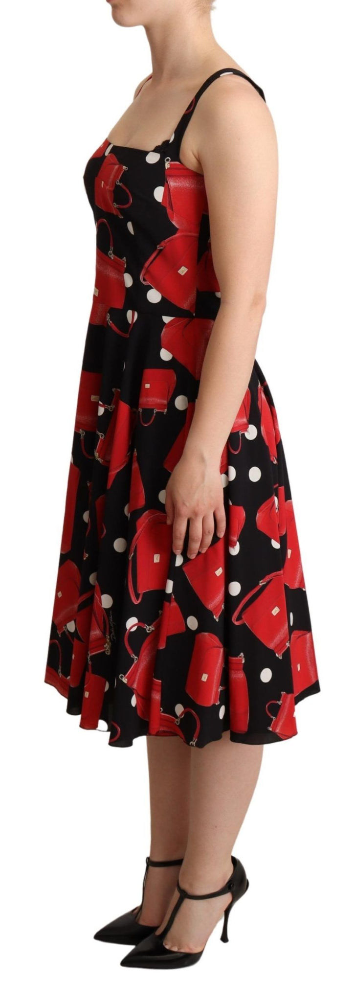Gorgeous brand new with tags, 100% Authentic Dolce & Gabbana Handbag print dress. Featuring a-line silhouette, hidden back zip and mid-length.