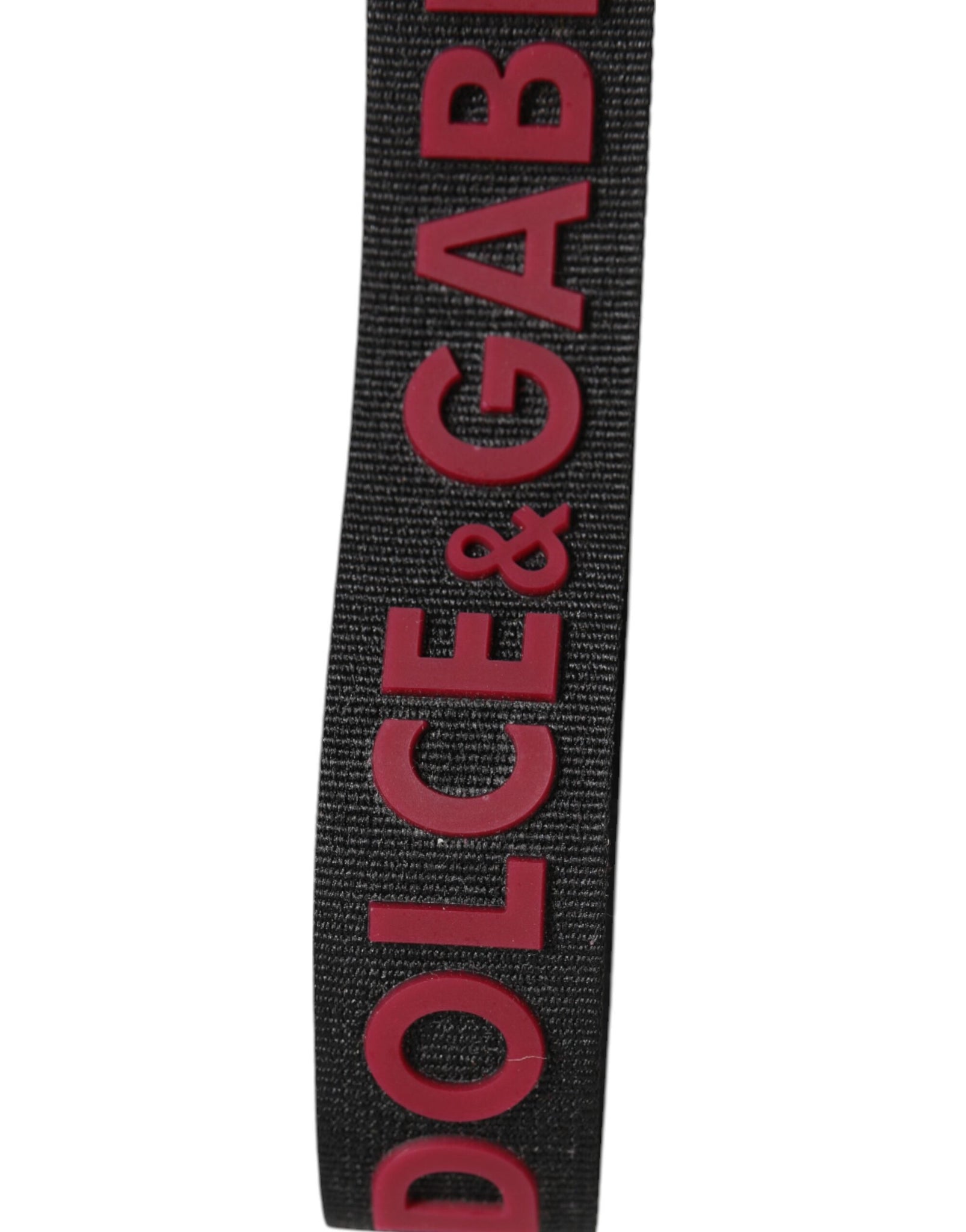 Dolce & Gabbana Black Red DG Logo Polyester Silver Men Keychain Keyring