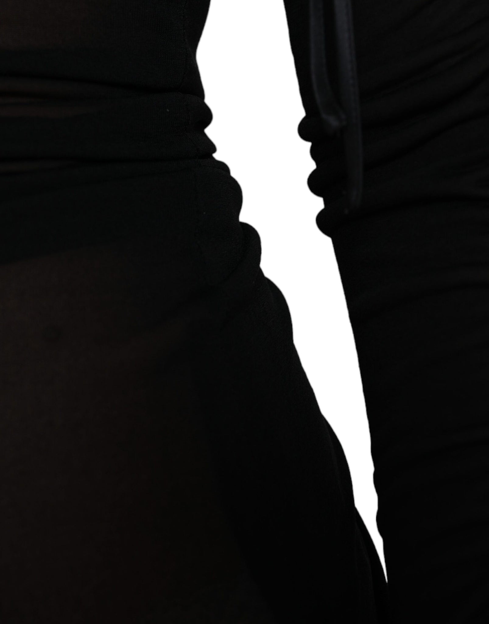 Gorgeous brand new with tags, 100% Authentic DOLCE & GABBANA midi dress. Crafted from black viscose blend, features a v-neck, long sleeves, a sheer and a fitted waist.