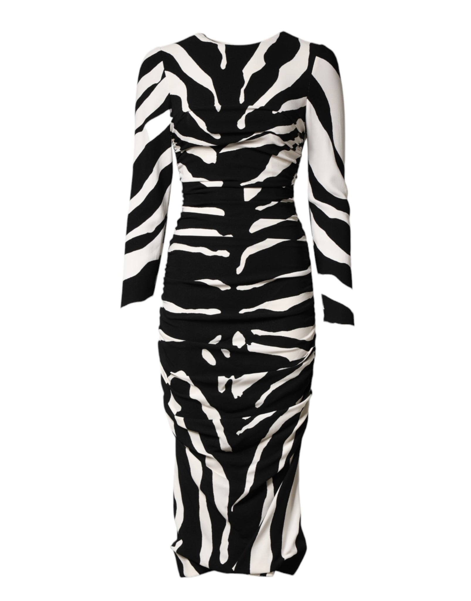 Gorgeous brand new, 100% Authentic Dolce & Gabbana midi sheath dress features a bold black and white zebra print crafted from luxurious silk. Designed with a sleek, form-fitting silhouette, it captures modern elegance with a touch of wild sophistication.