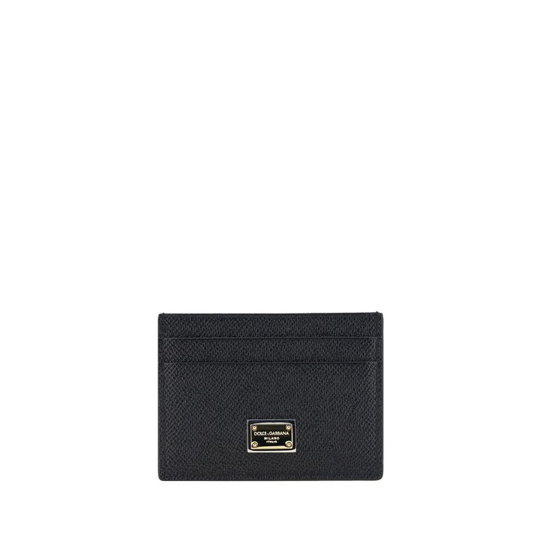 Calfskin Card Holder by Dolce&Gabbana, card slots on front and back, logo plaque on front, interior slot compartment.