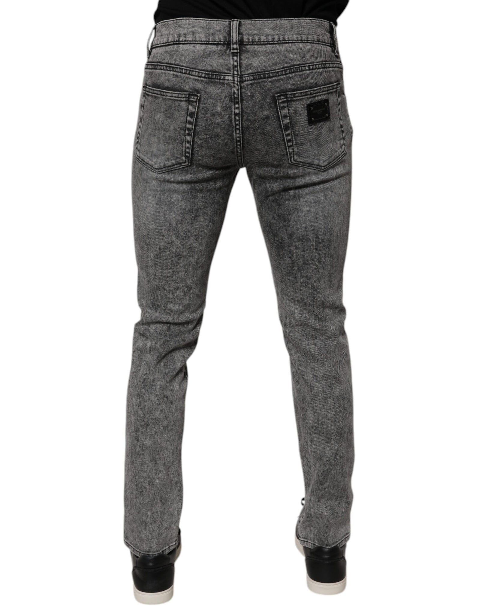 Dolce & Gabbana Dark Gray Washed Cotton Slim Fit Denim Jeans