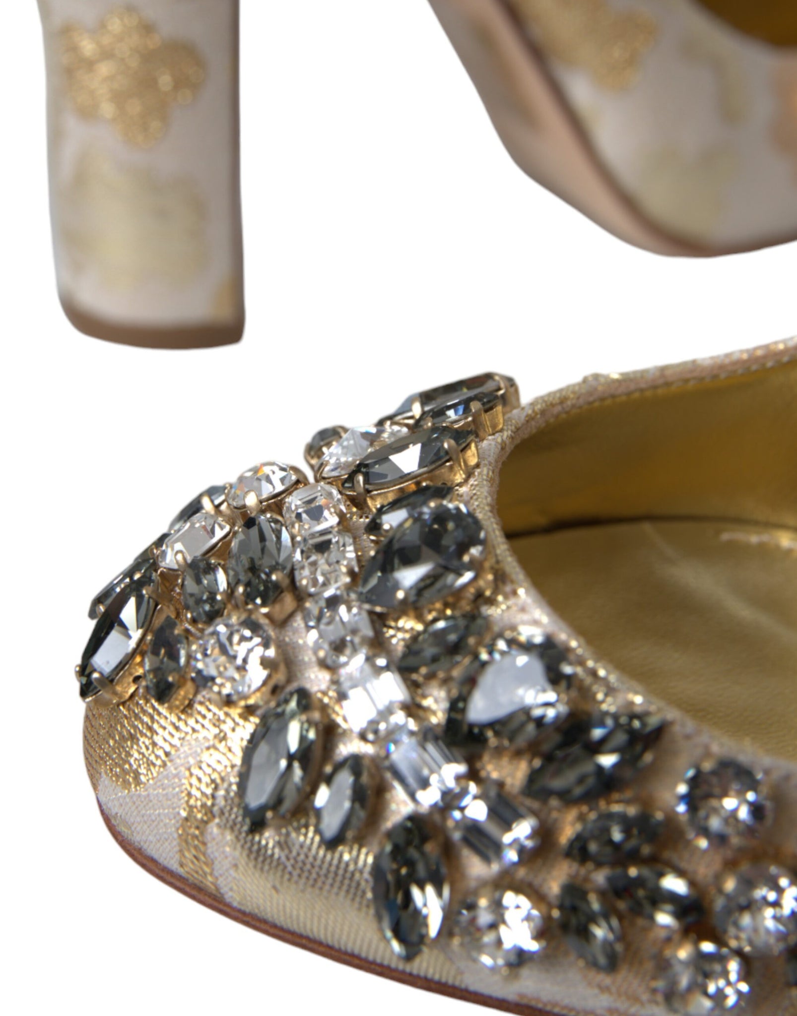 Dolce & Gabbana Gold Jacquard Crystal Mary Janes Pumps Shoes