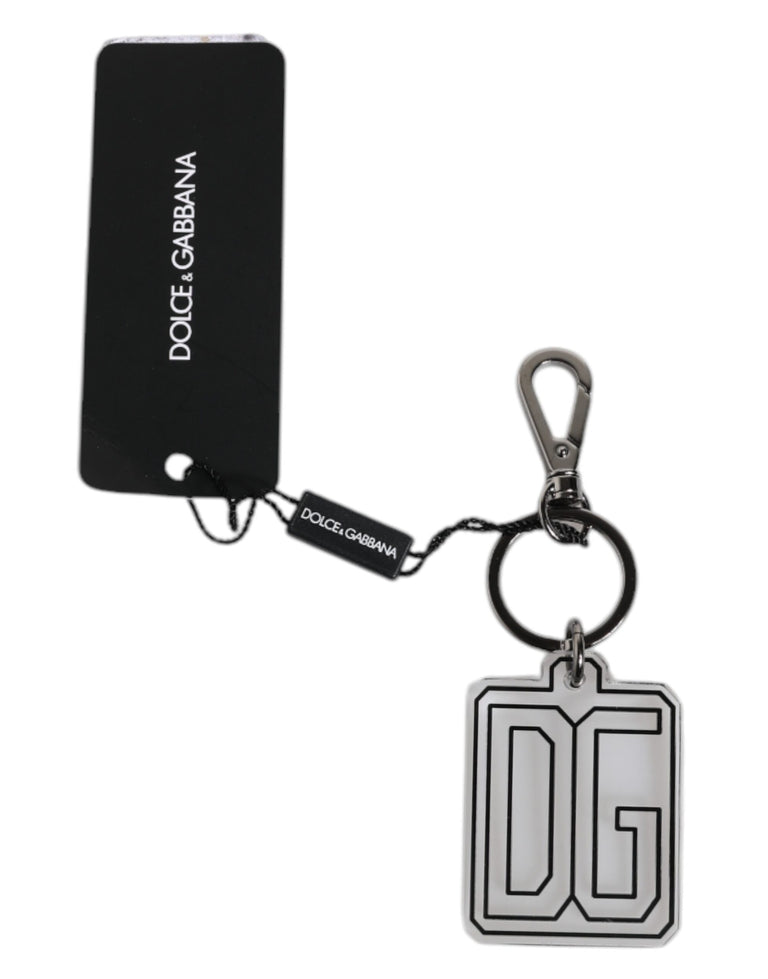 Dolce & Gabbana Gray Black DG Rubber Logo Silver Men's Keychain Keyring