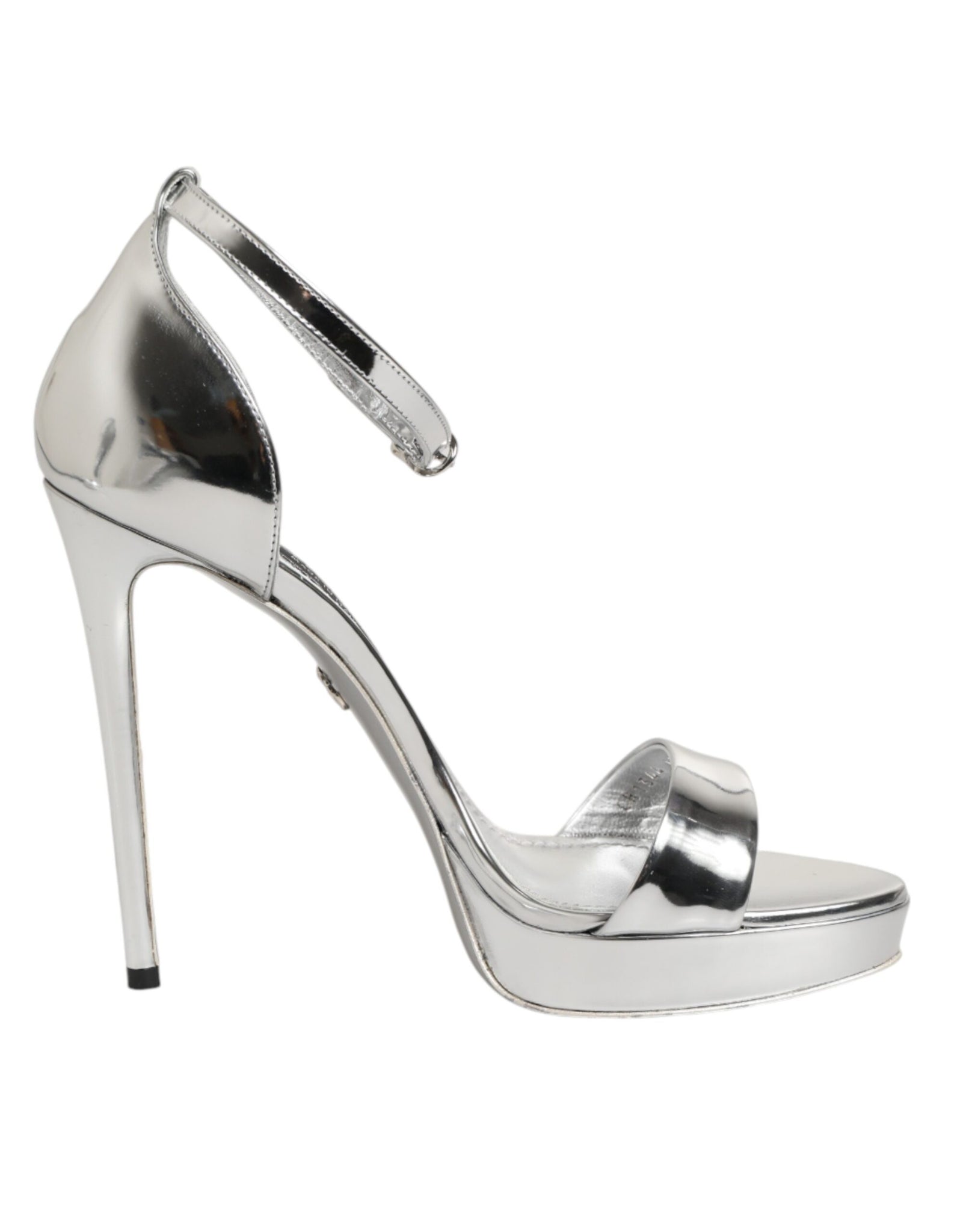 Dolce & Gabbana Silver Leather Platform Keira Sandals Shoes