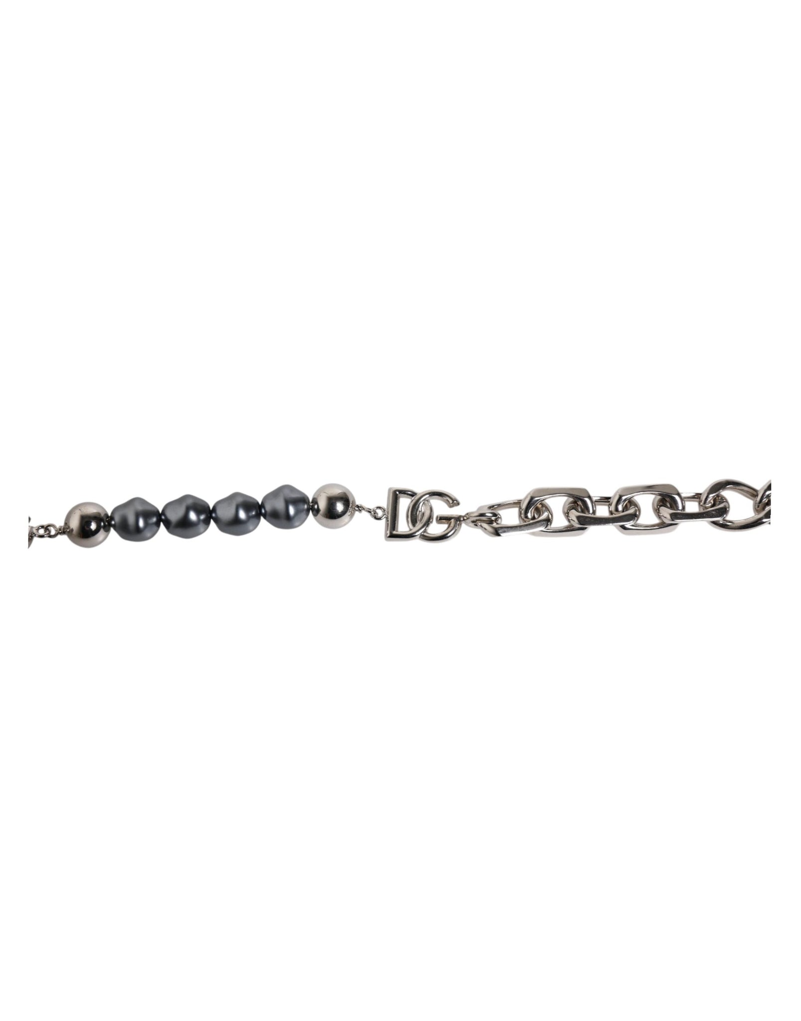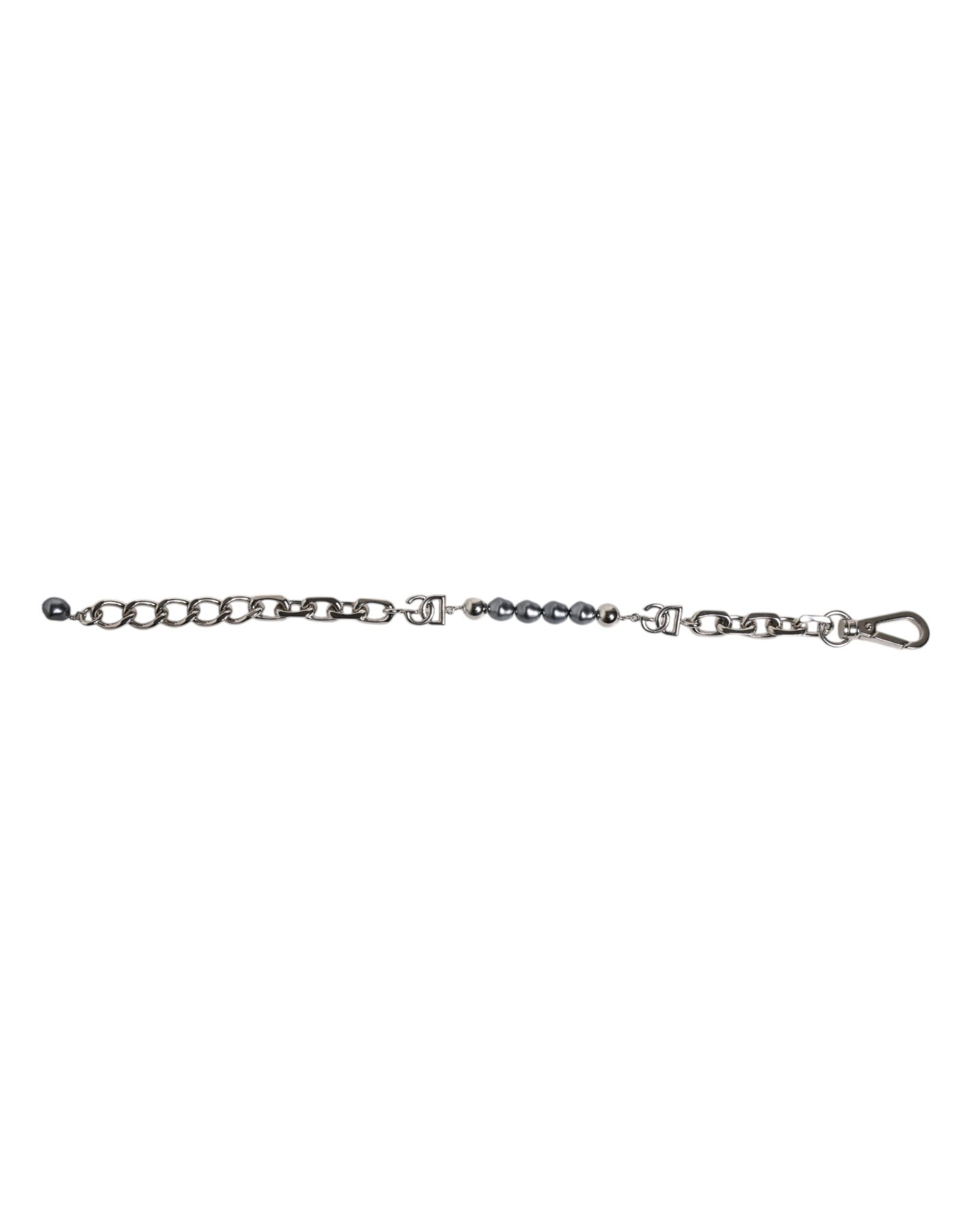 Dolce & Gabbana Silver Tone Chain Lobster Clasp Logo Gray Pearls Bracelet