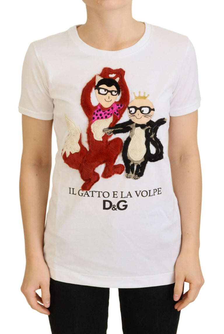 Absolutely stunning, 100% Authentic, brand new with tags Dolce & Gabbana iconic prints white cotton textured designer T-shirt features a round neck with welt finishing, a slim fit, a print to the front, a straight hem and short sleeves.
