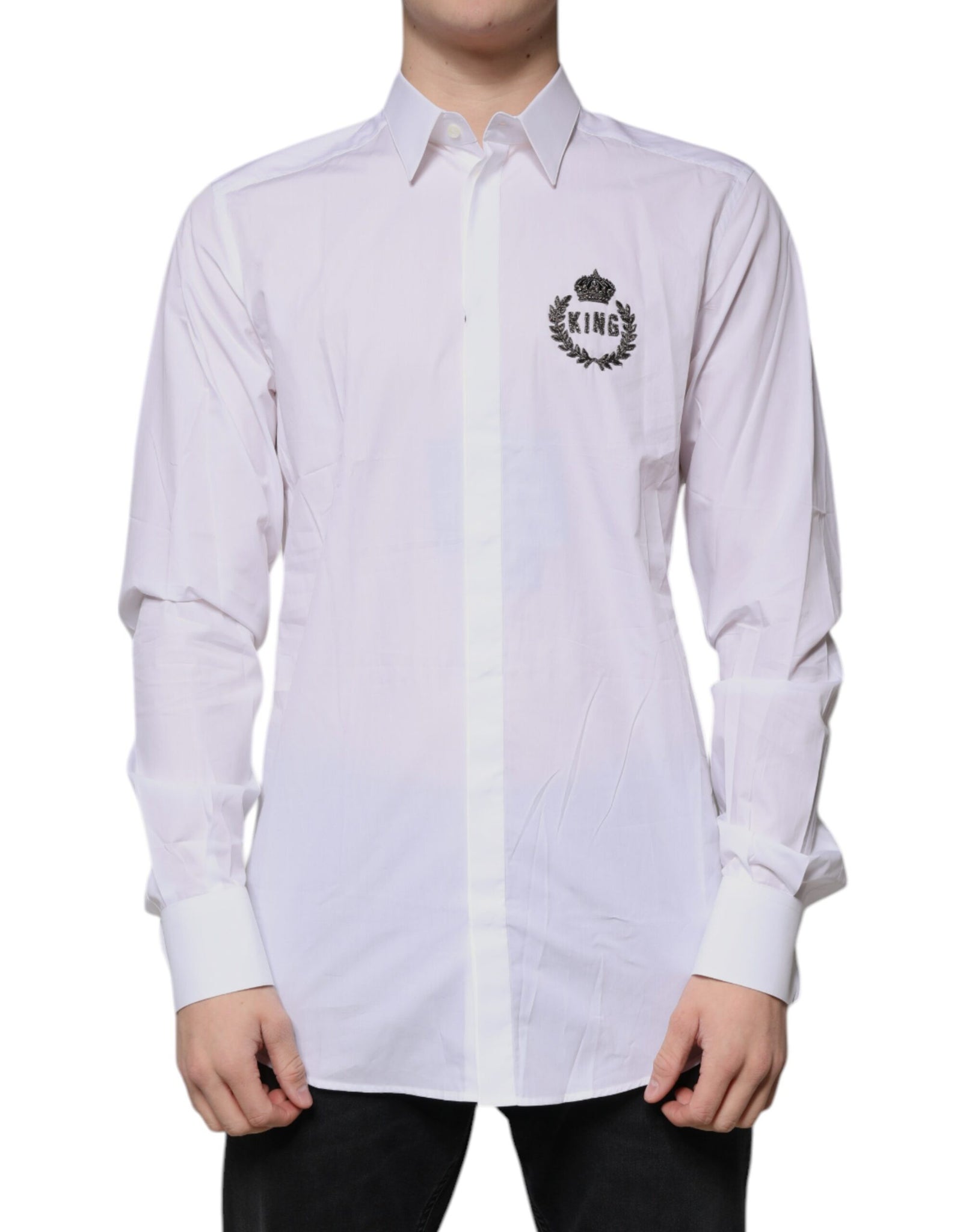 Dolce & Gabbana White Cotton Logo Formal Men GOLD Dress Shirt