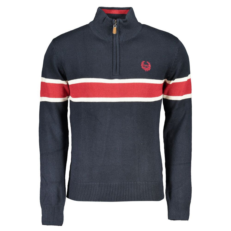 LONG SLEEVED SWEATER, HALF ZIP, CONTRAST DETAILS, EMBROIDERY, LOGO