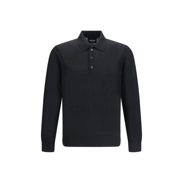 Giorgio Armani’s polo Sweater embodies a simple yet refined style. Featuring a classic collar and three-button closure, it’s finished with ribbed cuffs and hem that elegantly define the silhouette. An ideal piece for timeless everyday elegance.