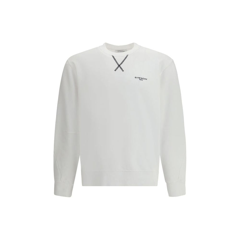 The Couture Seam Sweatshirt by Givenchy, made of gauzy fabric, is a garment that combines comfort and sophistication. The long-sleeved sweatshirt features a classic crew neck and a small GIVENCHY Paris signature embroidered on the chest, enhancing its minimalist yet elegant design. The ribbed collar, hem and cuffs add a touch of detail, while the couture seams create a rounded shape that gives a modern, relaxed fit. With its casual cut, this sweatshirt is perfect for those seeking a refined style without sacrificing comfort.