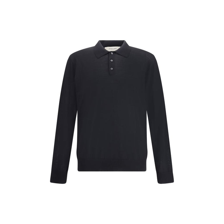 The Golden Goose virgin wool Polo Shirt combines classic style and quality craftsmanship. Featuring a traditional collar with buttons on the front, it features ribbed cuffs and hem that define its structure. The monochrome pattern and regular fit make it a versatile piece, perfect for casual elegance with a contemporary feel.