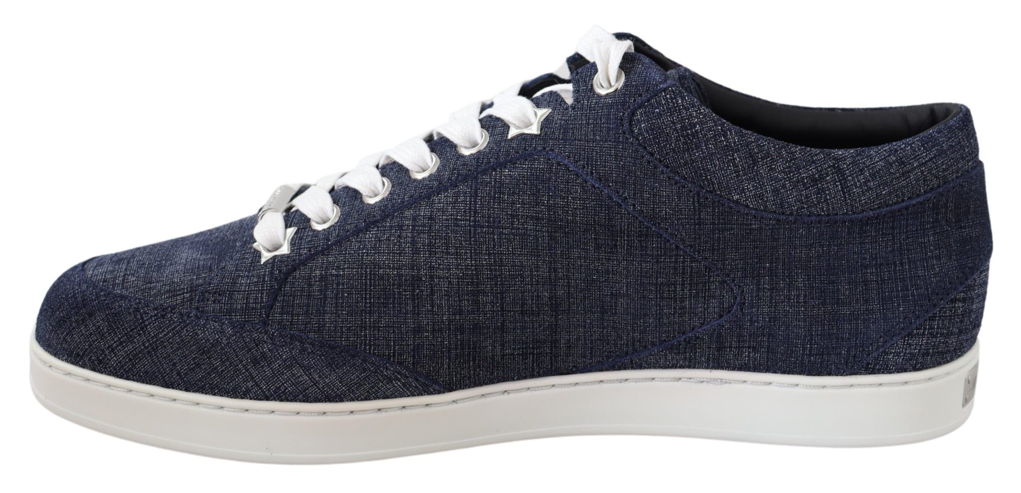 Revamp your style with these stunning Jimmy Choo ‘Miami odps’ Sneakers. Perfect for the fashion-forward individual, these sneakers boast a unique denim print on suede material, offering both luxury and comfort in a slip-on design. Complete with original tags, a protective dustbag, and a shoe box, these authentic sneakers are a must-have addition to your footwear collection.