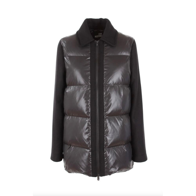 Discover the essence of casual elegance with this stylish Love Moschino jacket, boasting a sophisticated gray hue complemented by sleek black sleeves and collar. Designed for comfort and style, it features a practical zipper closure and is adorned with the iconic Love Moschino logo on the back—perfect for those looking to make a fashion statement.