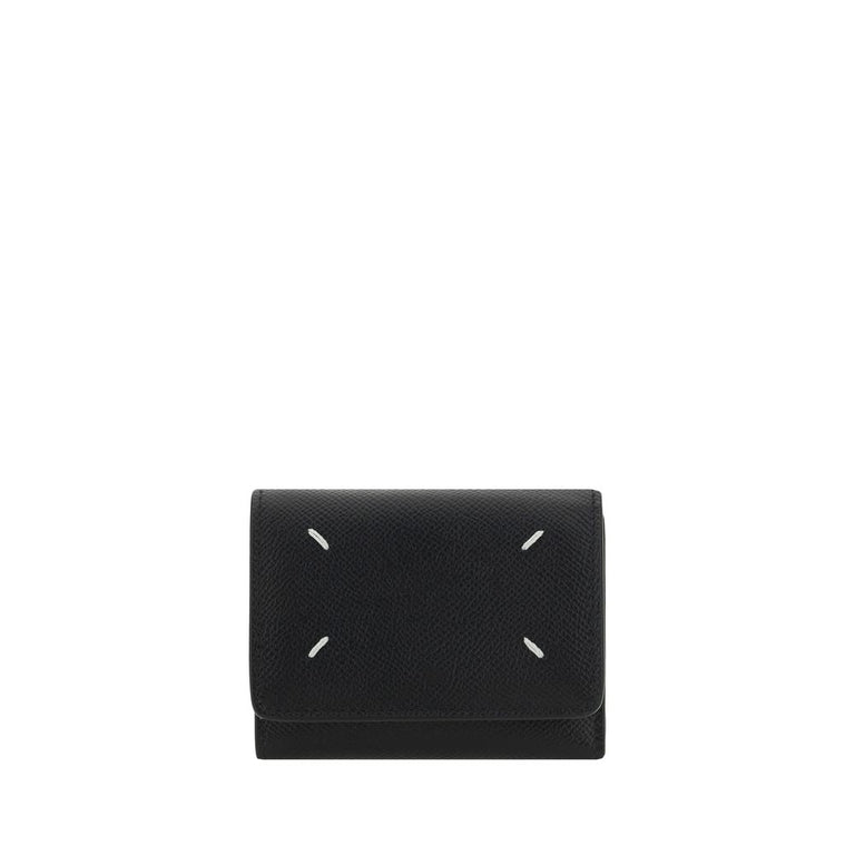 The leather Wallet by Margiela combines functionality with contemporary style. Made of grained leather, it closes at the front with a practical snap button. Inside it offers card slots, a zippered coin compartment and a bill compartment. The back features the brand’s iconic contrasting embroidered stitching, a distinctive detail that underscores its minimalist elegance.