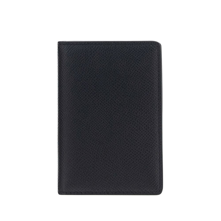 Calfskin Wallet by Maison Margiela, all-over grained calfskin design, internal card slot, brand signature pressure-printed inside, iconic contrasting brand embroidery on outside.