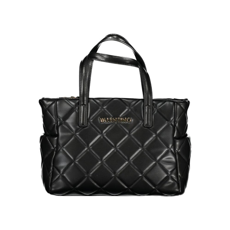 Indulge in the epitome of style and functionality with the Valentino Bags creation. This sleek black handbag ensures you make a bold fashion statement while keeping all your essentials organized. Boasting two handy external pockets, additional side compartments, and a secure internal pocket, this bag is crafted to cater to the modern, on-the-go lifestyle. Accented with striking contrasting details, it features both a zip and automatic closure to safeguard your belongings. The elegantly placed logo is a testament to its authentic design, and an adjustable/removable strap offers versatility for every occasion.