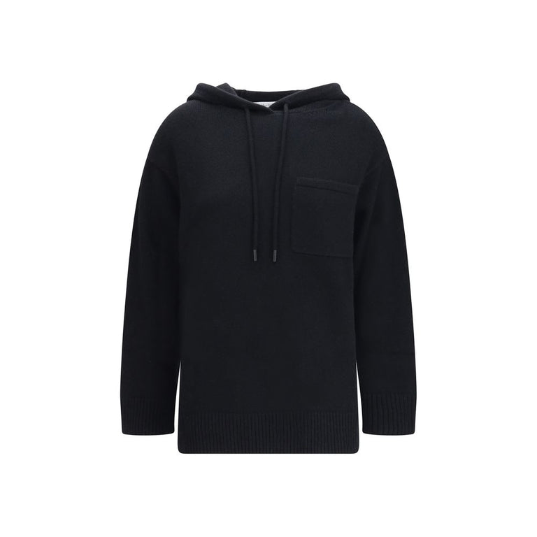 The Liana Sweater by Max Mara is crafted from a refined blend of Wool and Cashmere, offering softness and warmth. Designed with a balance of practicality and elegance, it features an adjustable drawstring hood and a chest pocket for a functional touch. Long sleeves with ribbed cuffs and a logo tag at the hem complete this piece, ideal for a casual yet sophisticated look.
