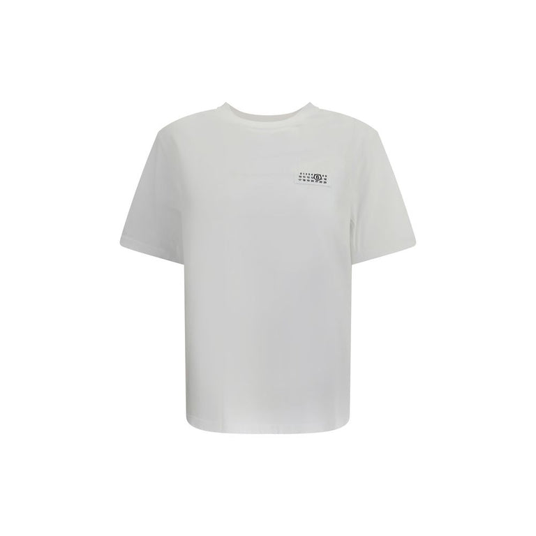 MM6’s cotton T-Shirt features a ribbed crew neck that enhances its simple and essential silhouette. The applied logo on the front adds a distinctive detail, giving the garment a touch of personality and contemporary style.