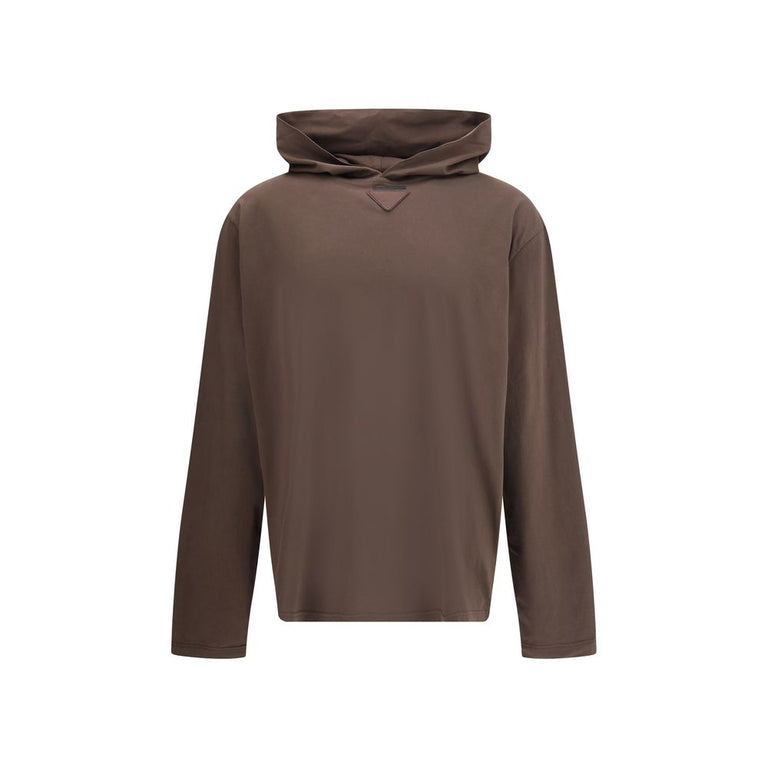 Prada’s lightweight Hoodie is a garment with a modern, minimalist allure. The triangular logo patch on the front adds an iconic and recognizable detail, while the lightweight fabric ensures comfort and versatility, ideal for a casual yet sophisticated look.