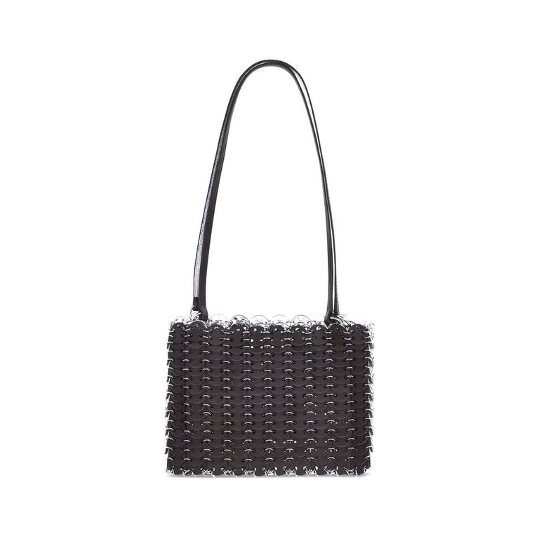 Rabanne’s Flip 1969 Shoulder Bag is a style icon with a reversible design that offers versatility and modernity. Featuring two long, flat handles, it is comfortable to wear on the shoulder. The open top adds a touch of practicality, while the disc detail, the brand’s iconic symbol, completes the look with a distinctive, contemporary accent. Perfect for those seeking a unique accessory with an innovative design.