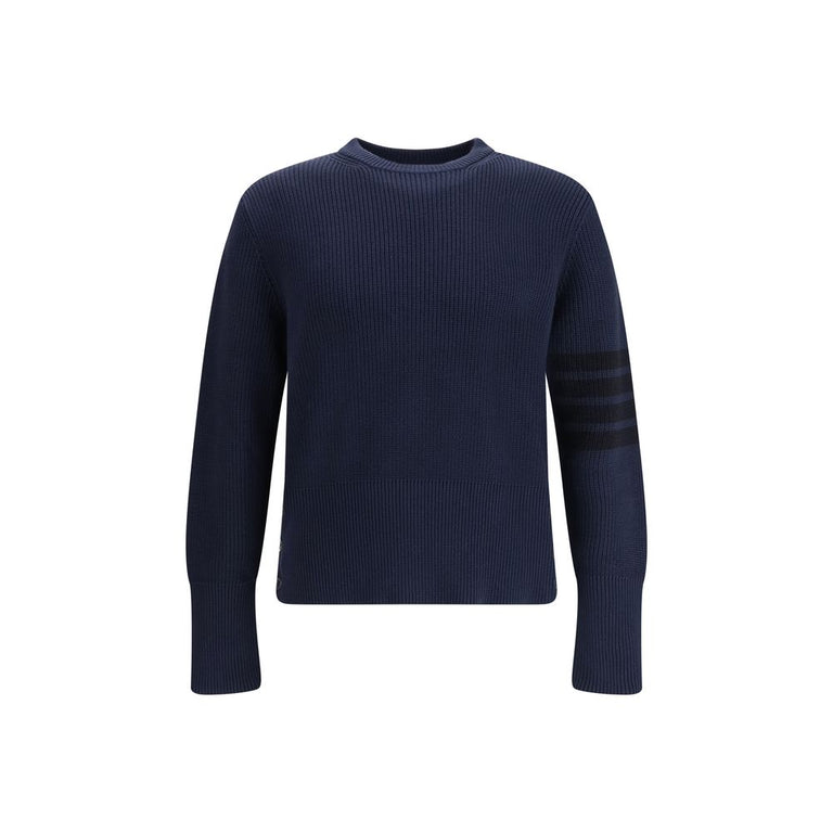 The 4-Bar Sweater by Thom Browne presents essential elegance through a cotton construction that combines softness with a precise graphic identity. The signature four stripes define the sleeve with an instantly recognizable touch, while the round neck shapes a clean and balanced line. The buttoned cuffs introduce a subtle sartorial detail that enriches the design without disrupting its refined simplicity. The Sweater reflects Thom Browne’s distinctive character through a sophisticated, contemporary presence made for those who appreciate iconic pieces with functional and curated style.