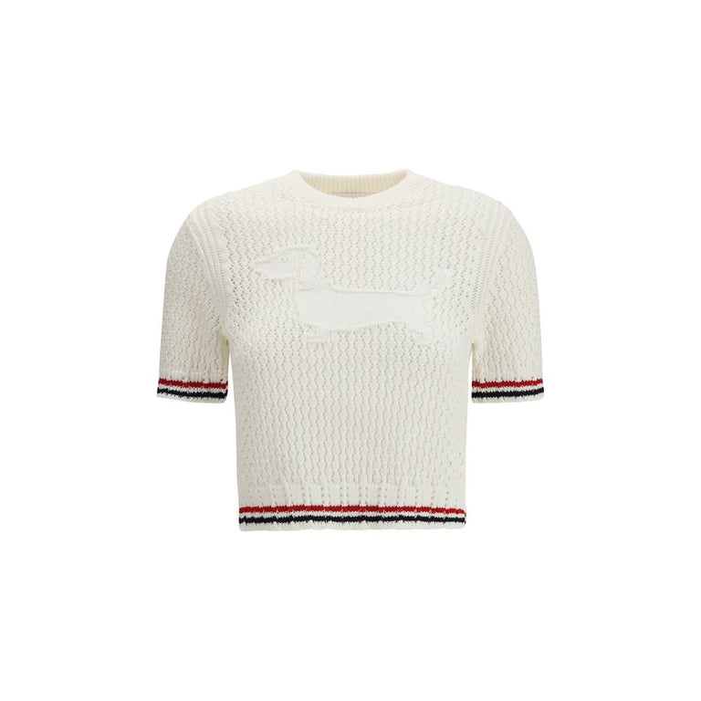 The Thom Browne Hector T-shirt features an elegant pointelle stitch construction showcasing the iconic Hector dog motif. Designed with a crew neck, short sleeves, and signature striped detailing, it blends refined craftsmanship with the brand’s unmistakable aesthetic.