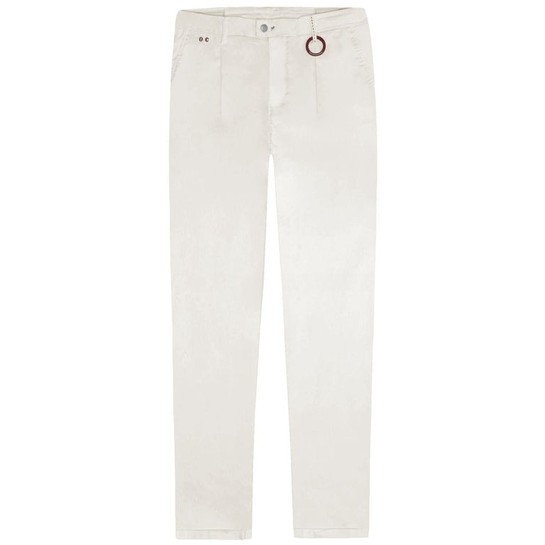 Elevate your sartorial standards with these pristine white Alberto trousers by Tramarossa. Expertly crafted in Italy, they blend comfort with a dash of flexibility, thanks to the high-grade cotton infused with elastomer. These trousers promise a snug fit with a sturdy button and zip fastening, tailored to perfection with a quartet of pockets and accented by a luxurious suede patch at the back. A harmonious fusion of style and functionality, they are an impeccable choice for the modish gentleman.