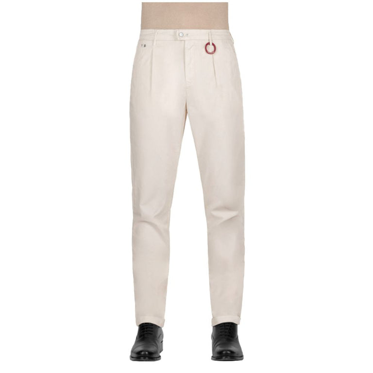 Tramarossa Alberto chino trousers in slightly stretchy white cotton, button and zip fastening, two side welt pockets and two back pockets, suede patch on the back.