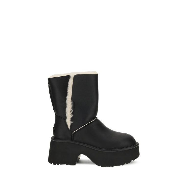 Classic Esmee Boots by Ugg combine comfort and style in a warm, versatile design. The upper is made of leather and reversed sheepskin, while the turn-up cuff allows you to customize the look with ease. The EVA sole provides lightweight cushioning, ideal for everyday wear. The edge is finished with a fabric made from recycled polyester fibers, confirming the brand’s commitment to sustainability. On the heel, the leather label with embossed UGG logo signs the model with discretion and authenticity.