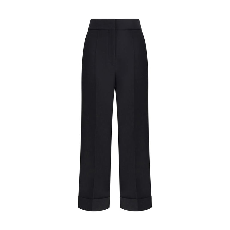 Valentino’s Wool Pants offer a clean, sophisticated silhouette perfect for stylish and versatile looks. The front zip-and-hook closure ensures a precise fit, while the two side welt pockets and back pockets add functionality. The turn-up at the bottom completes the design with a tailored touch, making it ideal for formal settings and more casual occasions with style.
