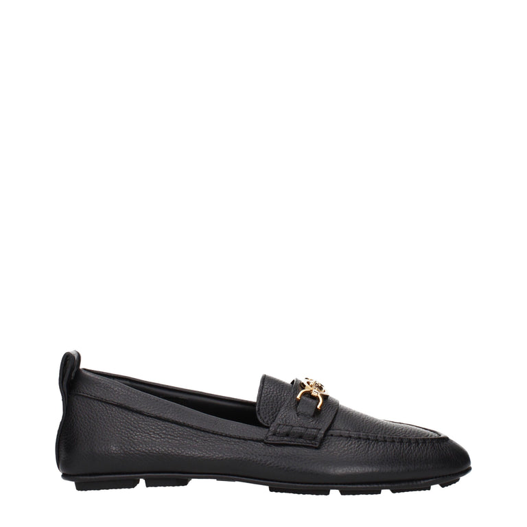 The product with MPN 10170721A121101B00V and code F84524 leather in black is a loafers designed by Versace. It has features like front logo.