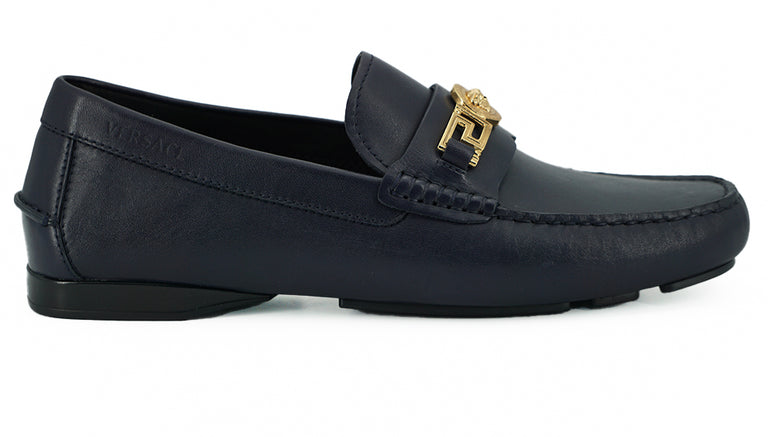 Versace Elegant Navy Blue Calf Leather Loafers
